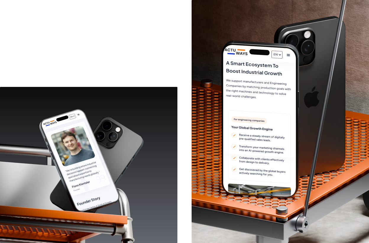 Actuways, an AI-driven ecosystem for the industrial sector, needed a digital presence that matched their innovative vision. As a specialized Webflow agency in the UK, we partnered with them to translate their complex AI matchmaking service into an intuitive, engaging, and multilingual user experience that speaks directly to engineers and manufacturers.