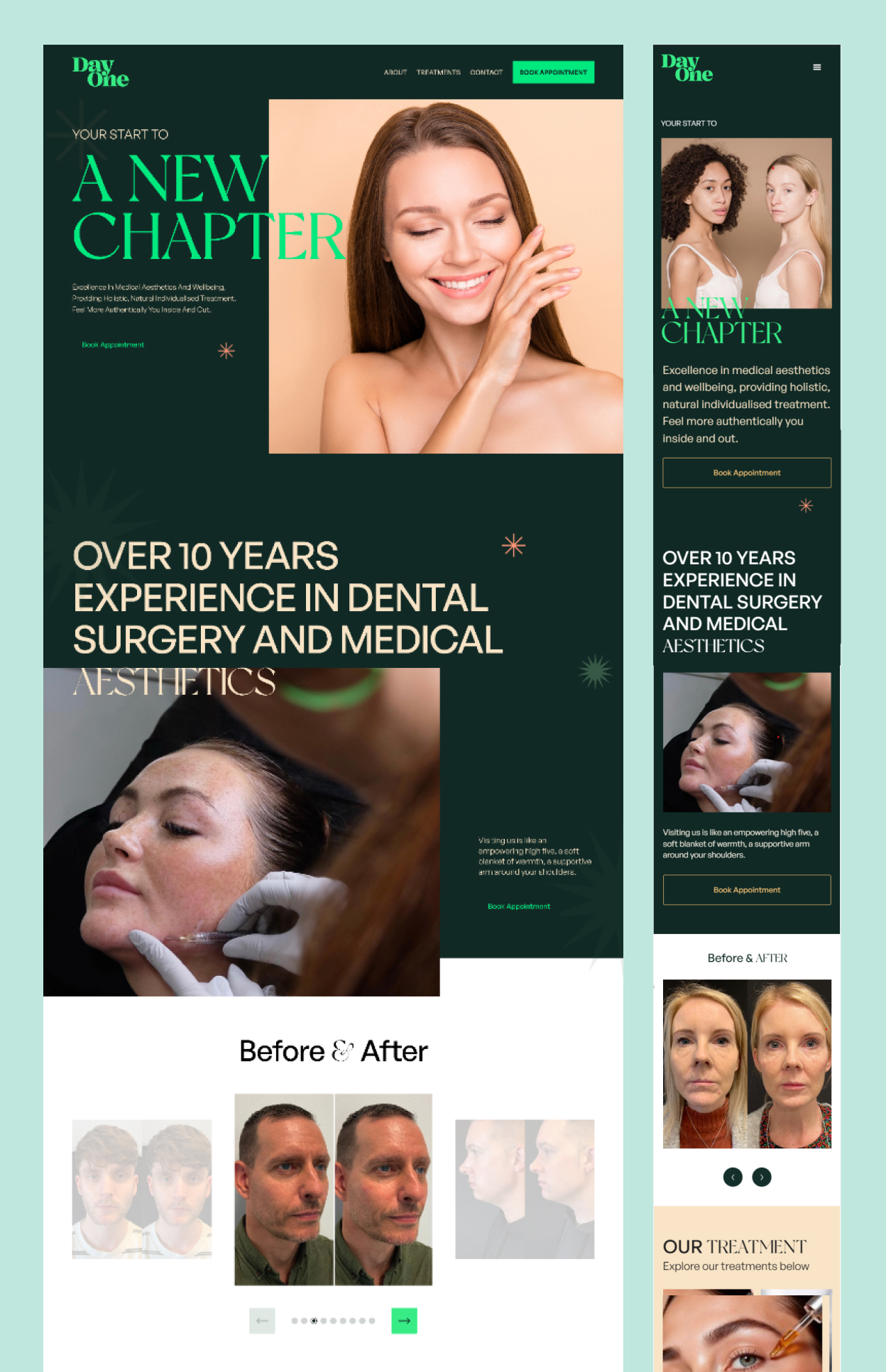 Day One Clinic’s website didn't reflect their brand's quality or convert visitors effectively. As a leading UK Webflow agency, we stepped in to lead a full redesign. Our mission was to transform their digital presence into an elegant, high-converting platform that truly represented their aesthetic expertise and drove client bookings.