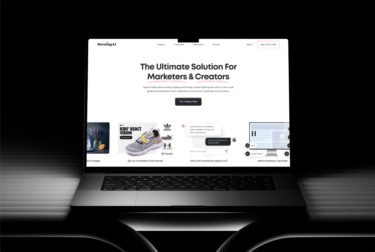 The goal was to create a high-performance website that clearly communicates the value of MorningAI's autonomous growth platform. Our team focused on redesigning the site's architecture to improve the user journey, making it easier for marketers to explore features like HypeStudio, AI Chat, and the platform's strategic tools. We aimed for a clean, modern, and highly functional experience.