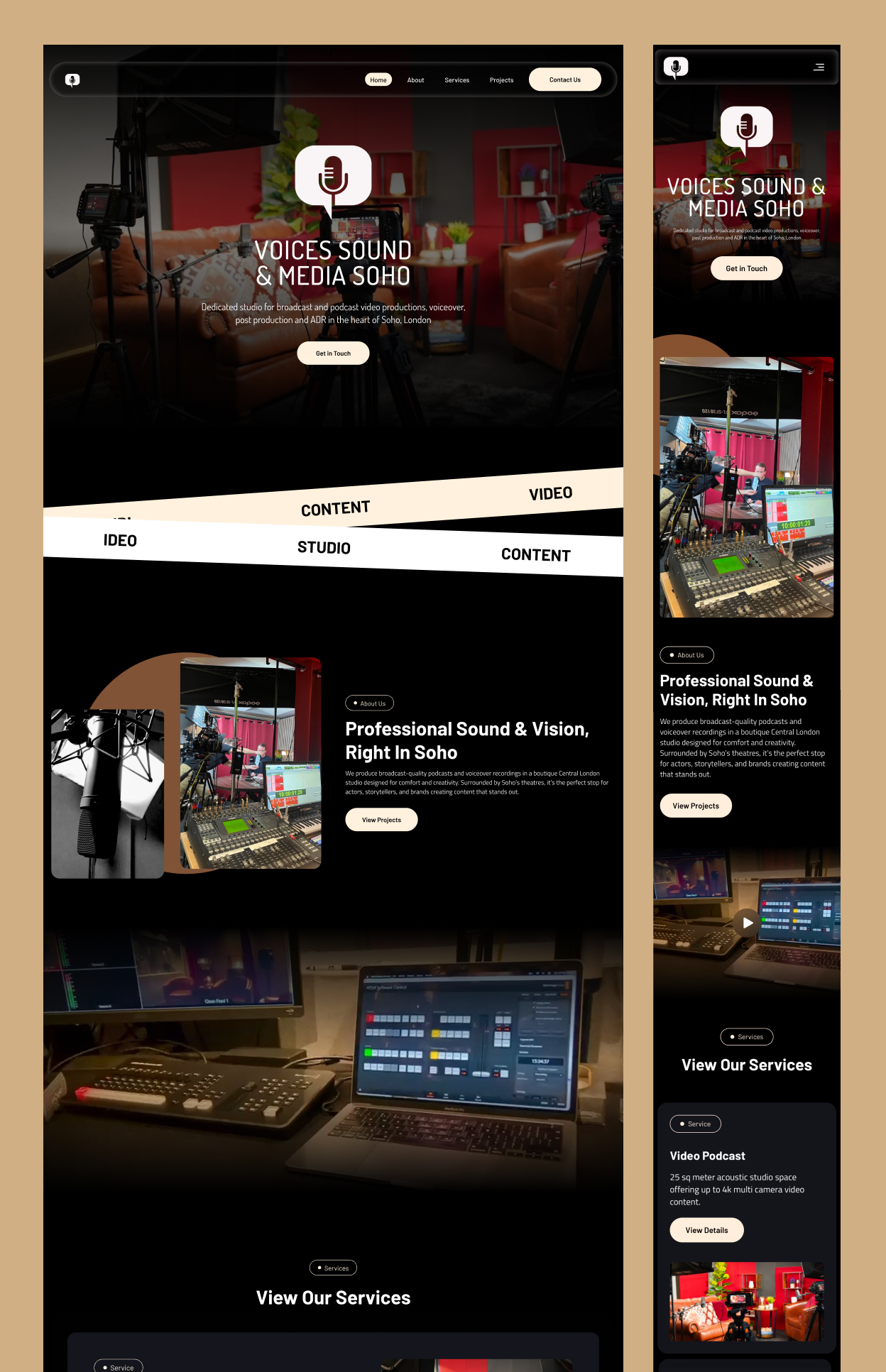 - AEO & SEO Integration: We engineered the site with deep-link optimizations for keywords such as "Soho Voiceover Studio," "Video Podcast Production London," and "ADR Studio Soho," ensuring the site ranks as a top-tier entity in AI search results.